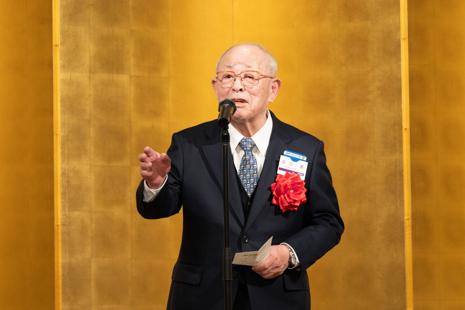 「特別表彰」に対し、代表して菊池 勇氏から受賞のご挨拶をいただき式典が終了。祝賀会並びに新年賀詞交歓会に移りました。