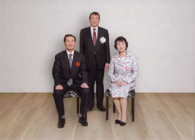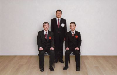 園田会長と受賞者の服部氏、上本氏